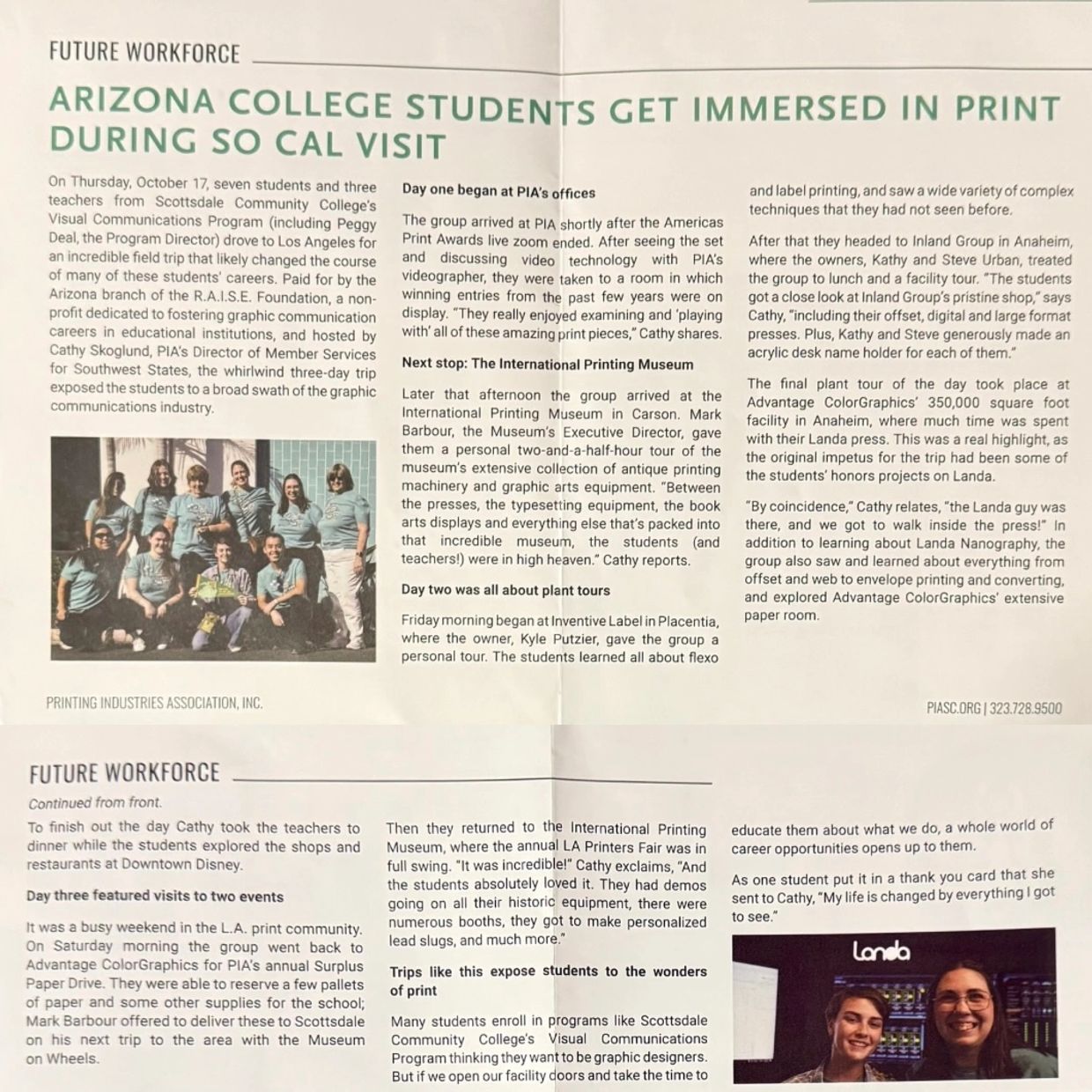 I’m eternally grateful to the Landa representative at Advantage ColorGraphics, the dedicated workers there, Tom, Lou, PIA, Bill, Peggy, and Finn for being the best research partner. This trip was truly the cherry on top of an already incredible journey.